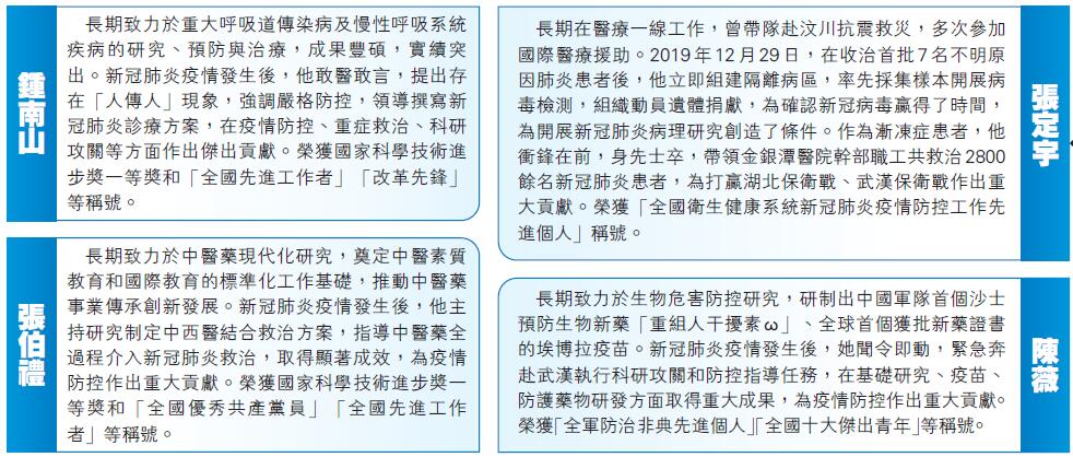 【香港商報網訊】國家主席習近平11日簽署主席令,根據十三屆全國人大常委會第二十一次會議當日表決通過的決定,授予鍾南山「共和國勳章」,授予張伯禮、張定宇、陳薇(女)「人民英雄」國家榮譽稱號。
