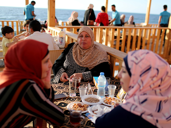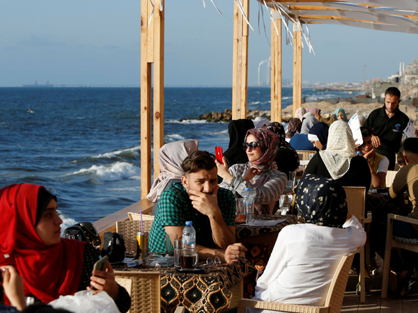 全球新冠病毒肆虐,但人們的生活仍將繼續。在中東地區,巴勒斯坦是疫情控制做得最好的國家之一。圖為路透社記者8月5日拍攝的巴勒斯坦加沙城一家海濱咖啡館的情景。(圖源:路透社)