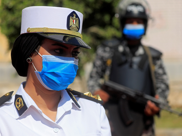 埃及開羅,參議院選舉第二天,戴著面罩的安全人員在投票站外站崗。