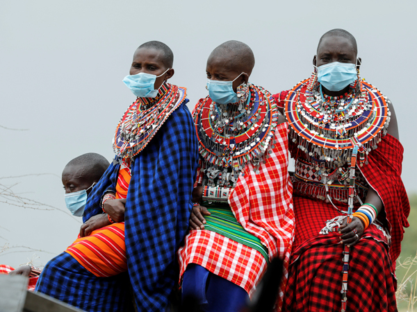 肯尼亞安博塞利國家公園,身著傳統服裝的婦女等待世界大象日。