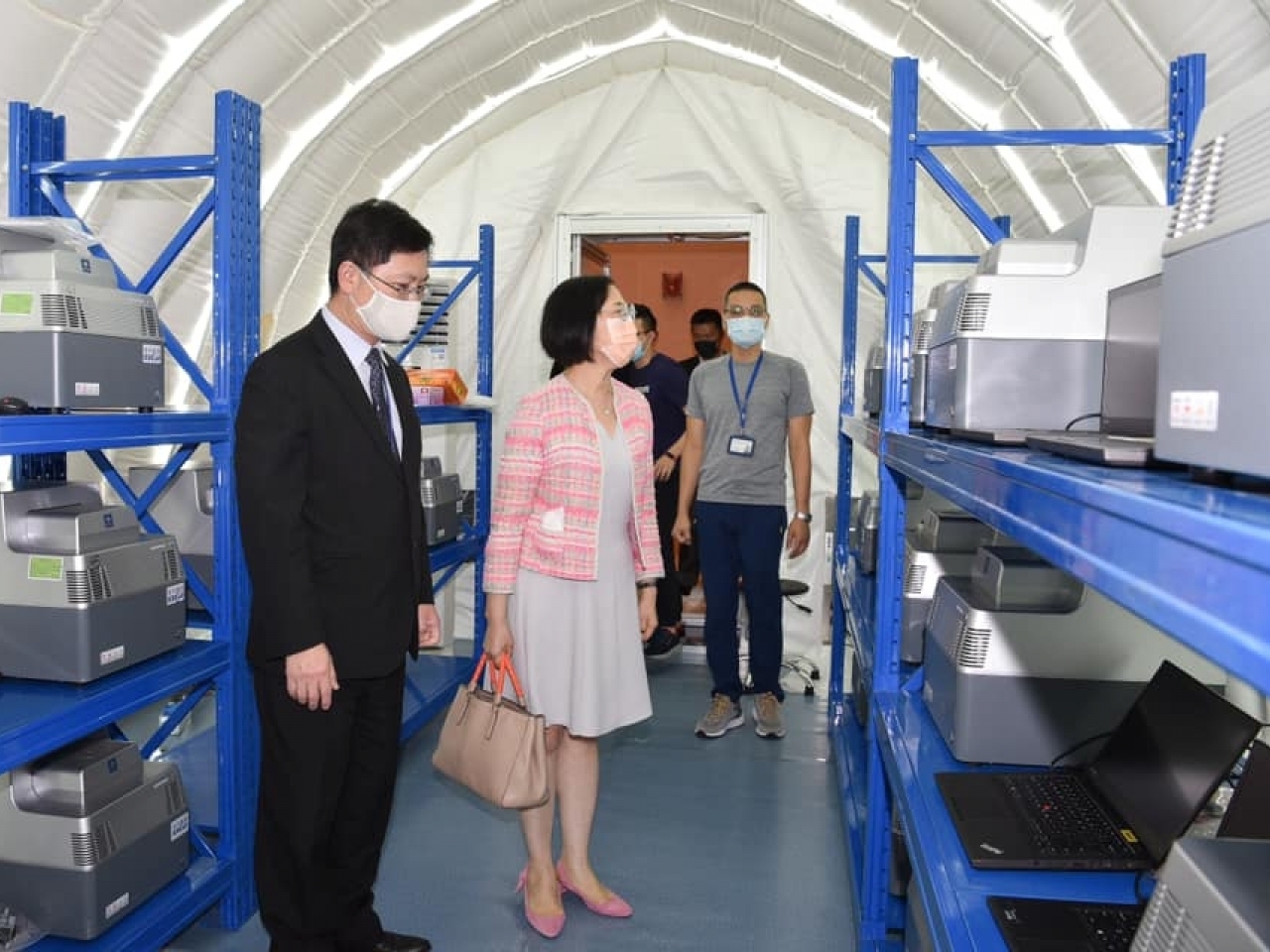 食物及衛生局局長陳肇始亦再次衷心感謝中央政府大力支持本港的抗疫工作。她於社交媒體帖文中指出,與創新及科技局局長薛永恒到了中山紀念公園體育館,參觀「臨時氣膜火眼實驗室」的搭建情況:「16個氣膜實驗室大致準備就緒。實驗室符合第二級生物安全水平,並採取妥善的感染控制措施,確保衛生,不會影響附近民居或環境。」