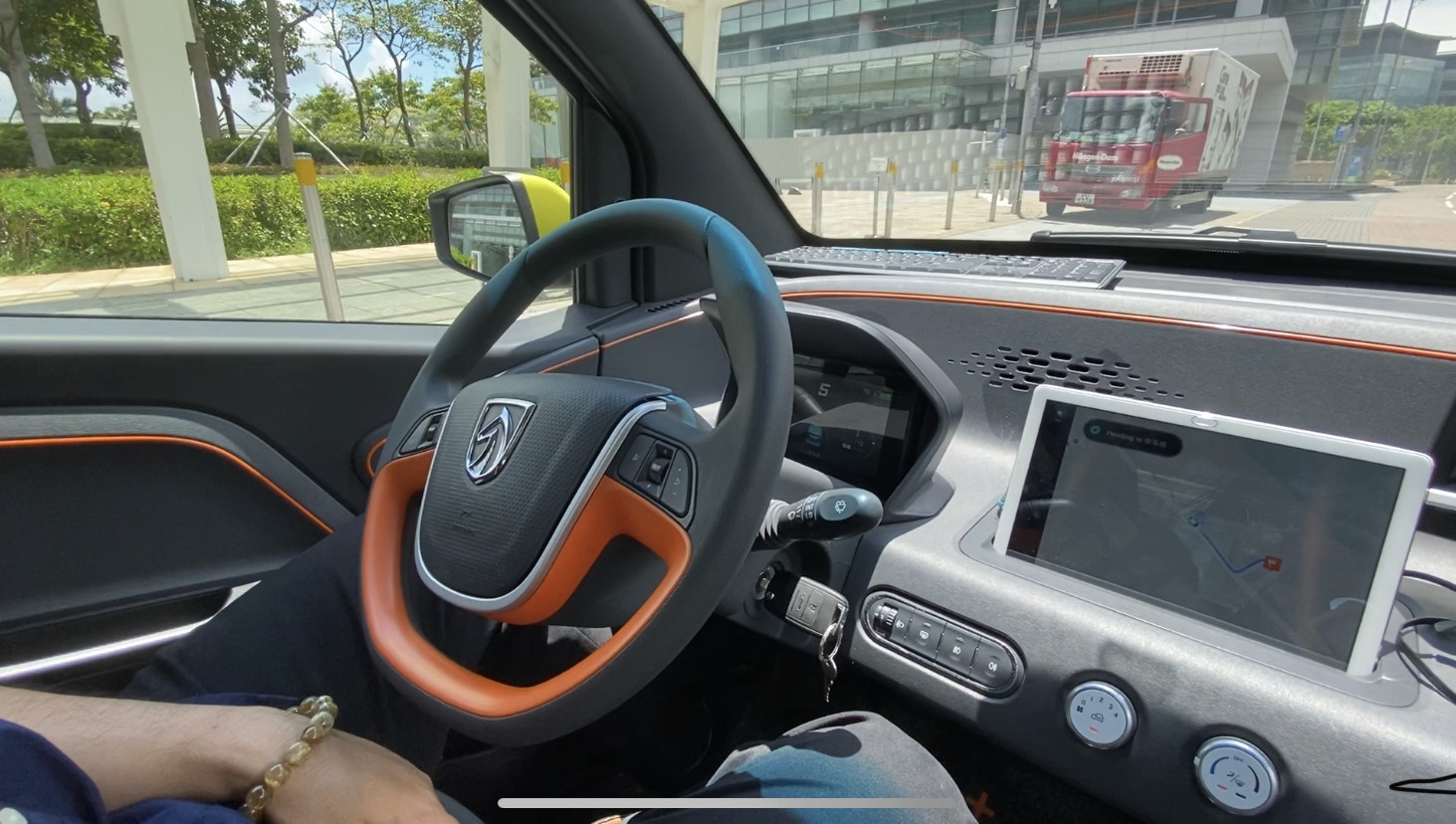 記者親身體驗,可見行車時軚盤自行轉動,轉彎也沒有問題。