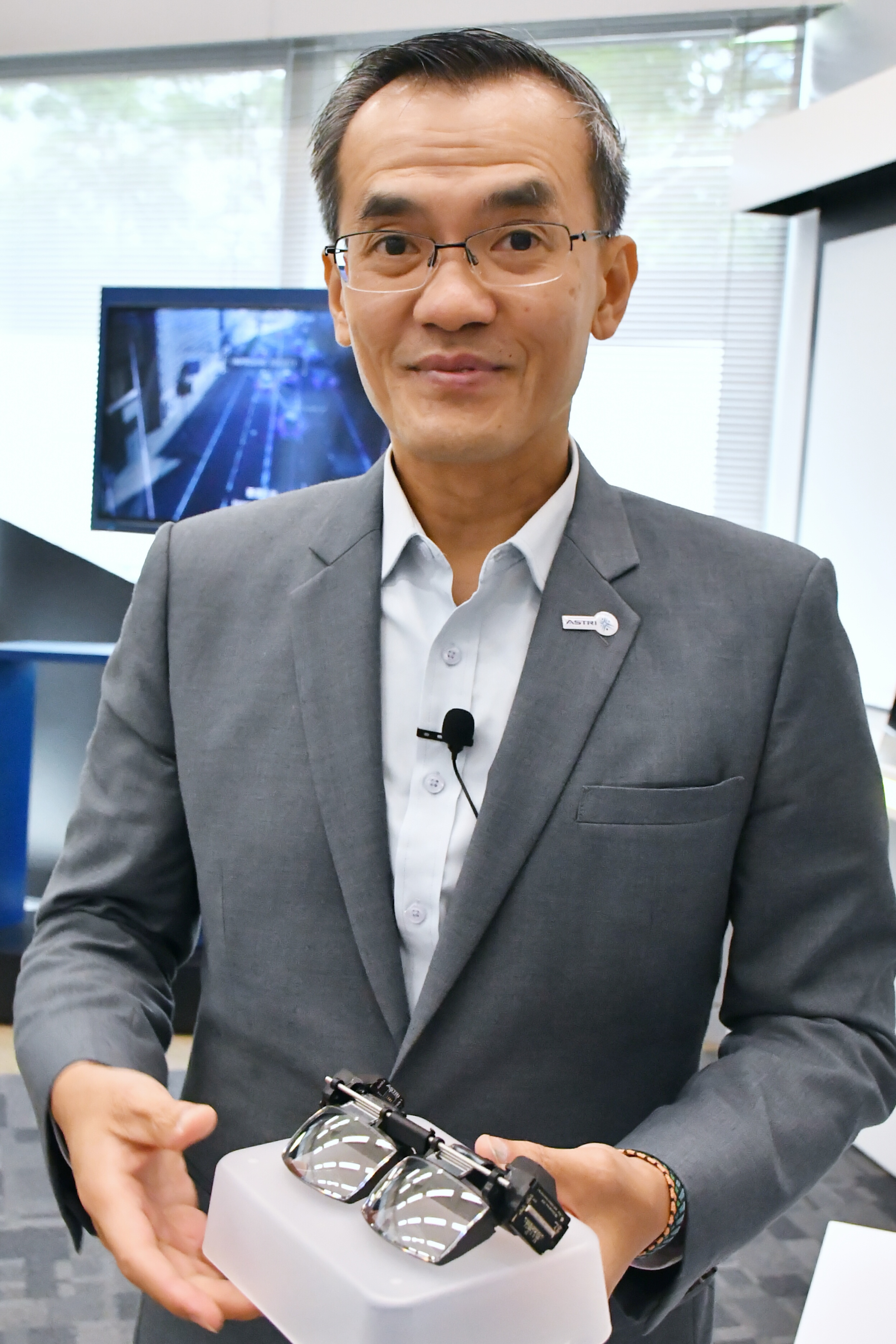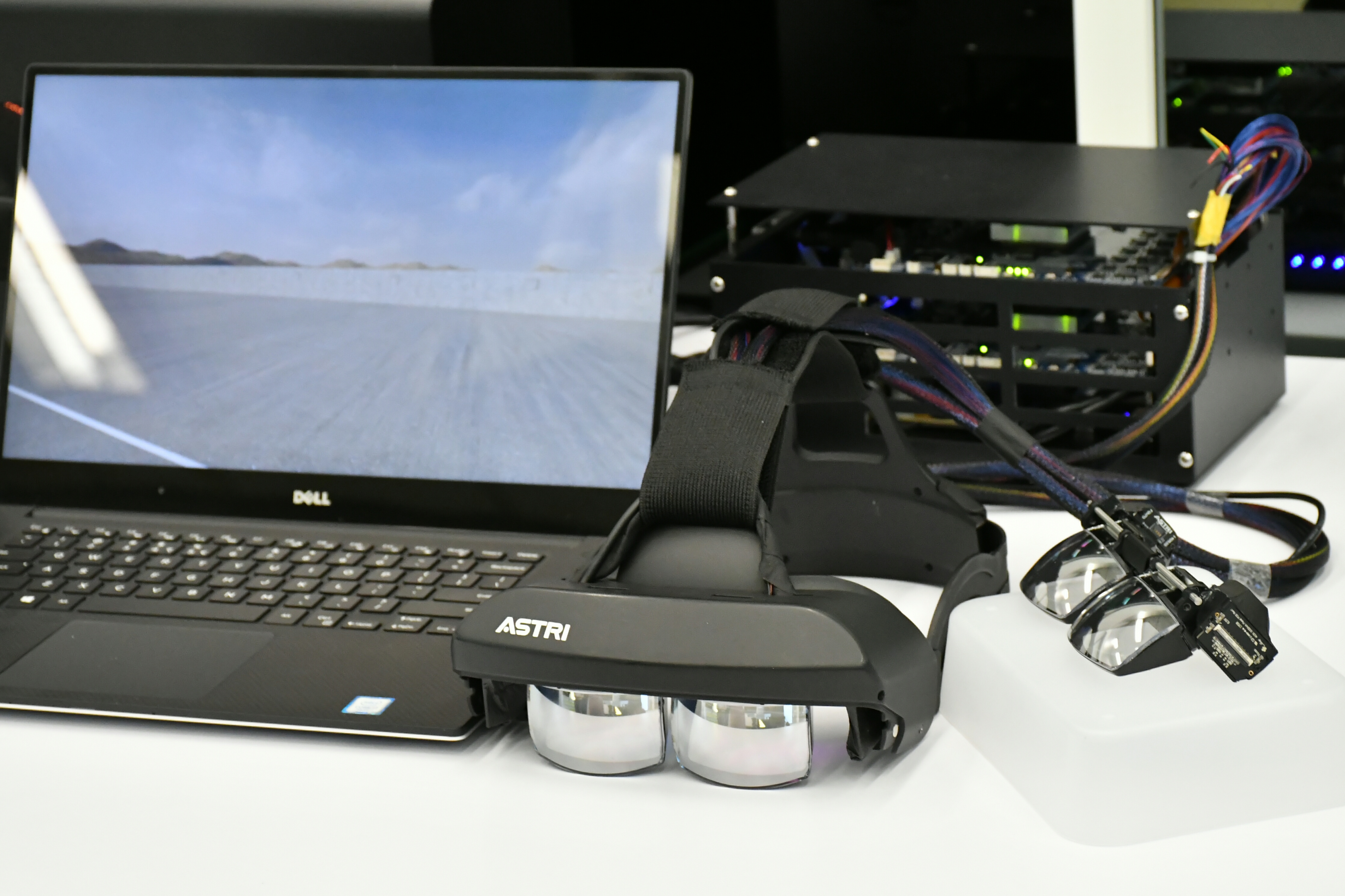 應科院研發的4K2K AR/VR頭戴式顯示器(Head-mounted display, HMD),可以掃描瞳孔認主,能讓使用者體驗70度廣闊視野。