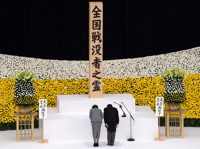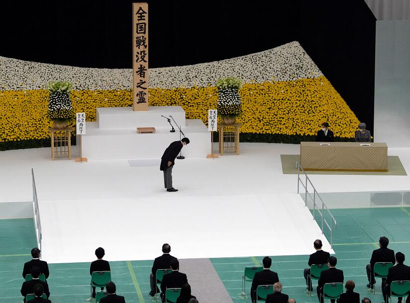 【香港商报网讯】8月15日是日本战败75周年纪念日,由日本政府主办的「全国战殁者追悼仪式」在东京举行,日本德仁天皇夫妇以及首相安倍晋三等出席。安倍晋三在致辞中表示不让战争惨祸再度上演,但未提及对亚洲各国的加害责任,同时也去掉了往年「谦虚面对历史」以及「谨记历史教训」等相关表述。(图源:路透社)