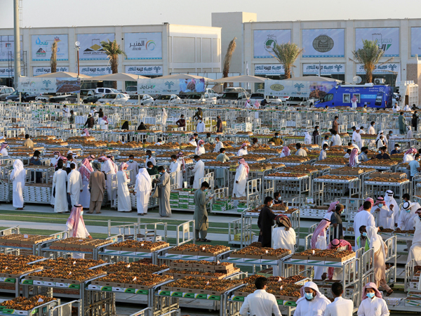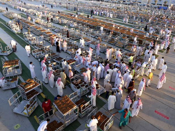 【香港商报网讯】8月中旬是中东地区椰枣树果实成熟的季节,位于沙特首都利雅得以北的卡西姆省Unaizah市的椰枣市场热闹了起来,密密麻麻的椰枣摊档吸引了世界各地的客商前来选购。沙特拥有近2500万棵椰枣树,是世界椰枣的盛产地。下图为路透社记者15日在Unaizah市拍摄的椰枣市场交易场景。(图源:路透社)