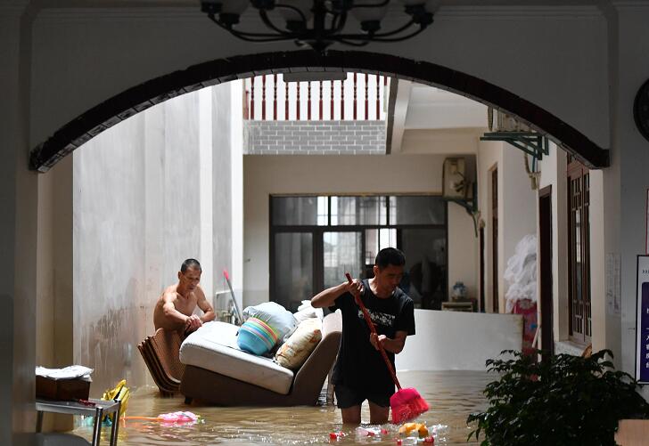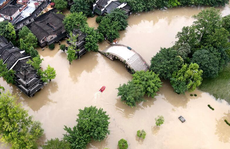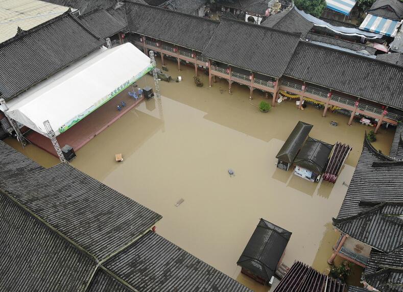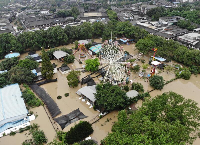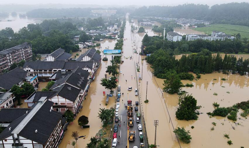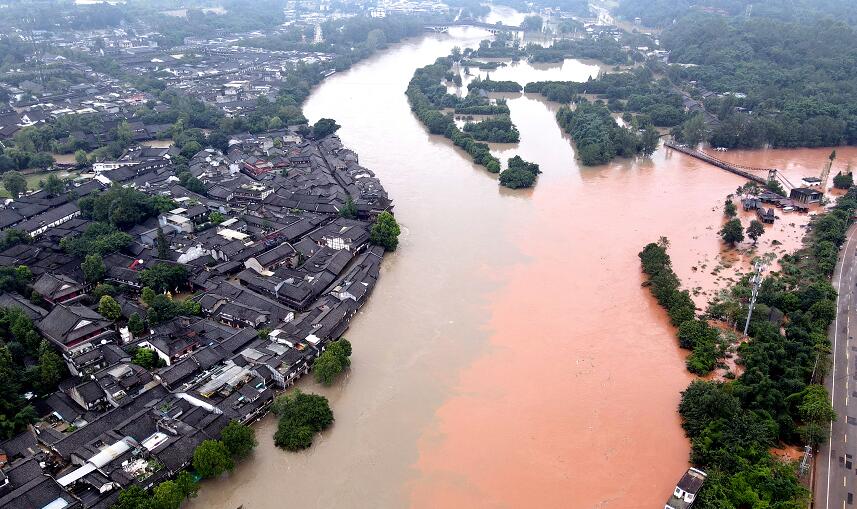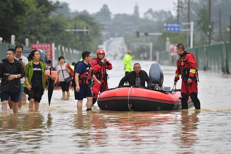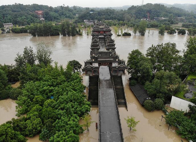 【香港商报网讯】8月17日,受持续强降雨天气影响,四川多地遭遇暴雨洪涝灾害,流经成都市双流区黄龙溪古镇的府河和鹿溪河水位超警戒水位,古镇街道大面积进水被淹,消防、公安以及蓝天救援队等先后转移民众7026人。(图源:中新社)