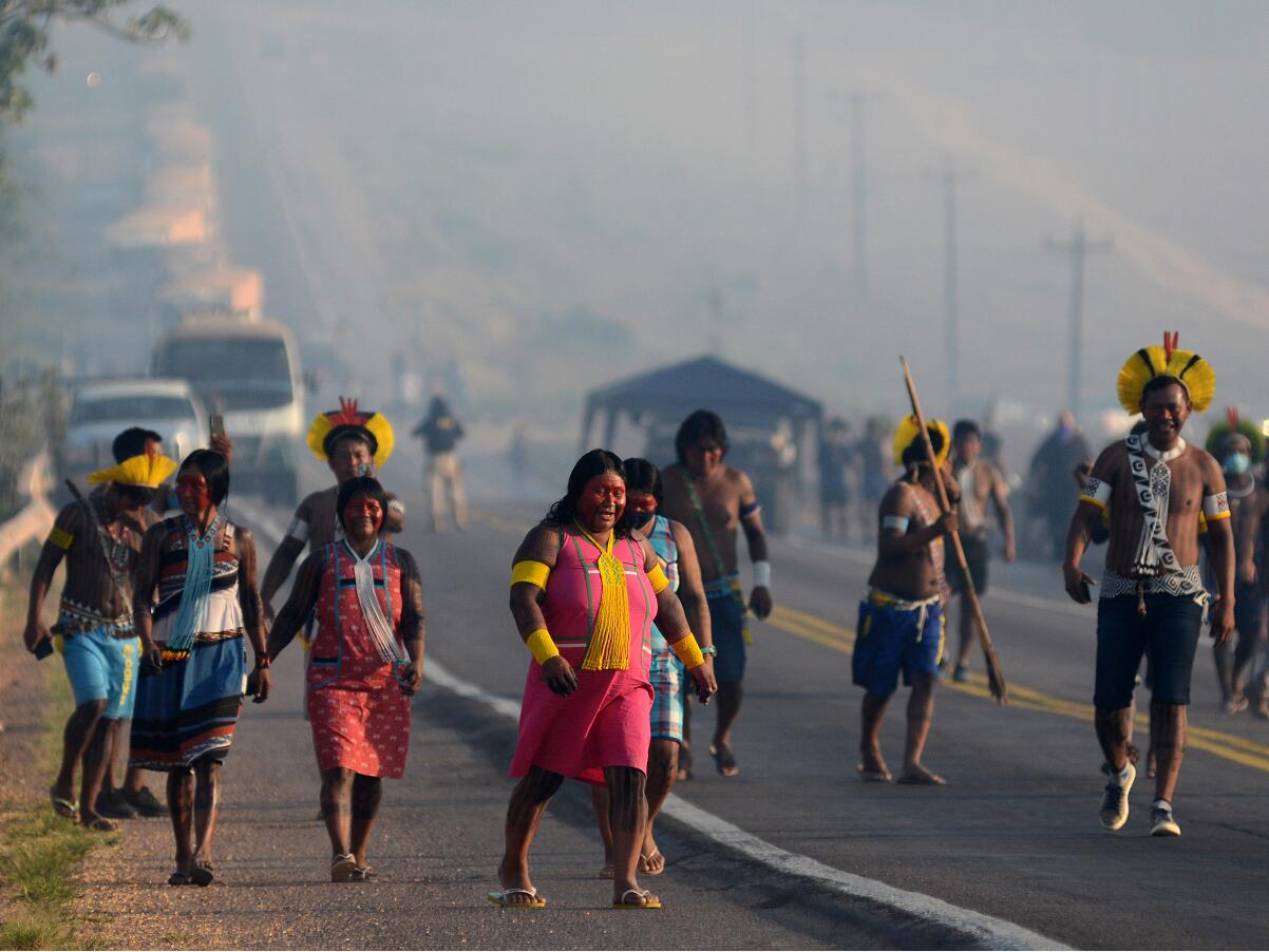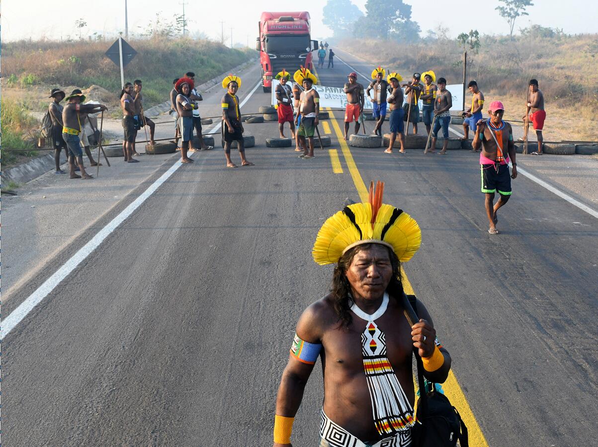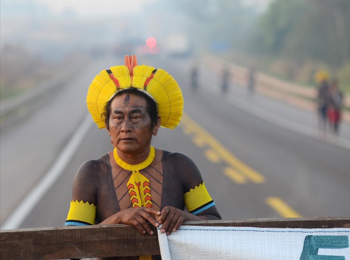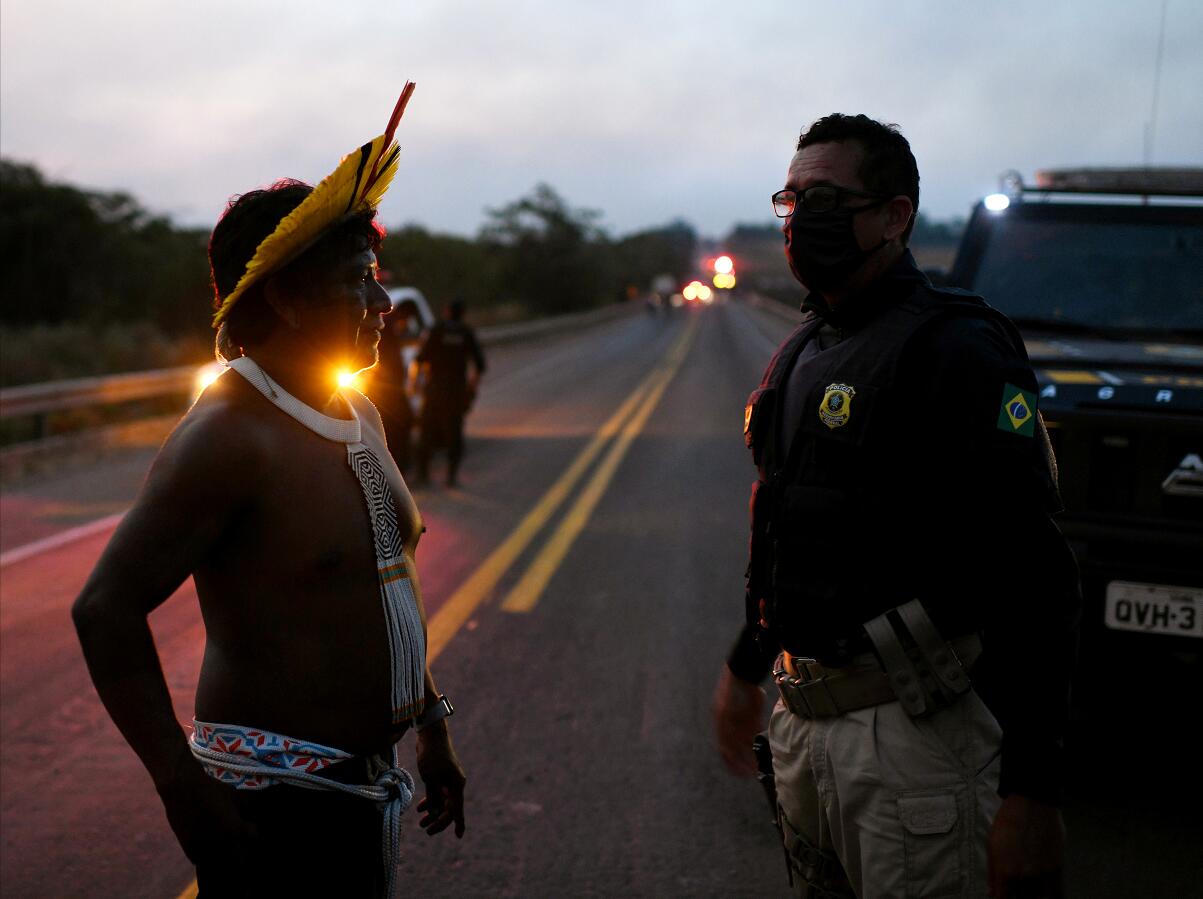 8月17日,巴西Kayapo的土著居民封锁了BR163国道,抗议政府在土著地区实施防疫措施。巴西是全球疫情最严重的国家之一,目前累计确诊病例334万宗,疫情蔓延至全国98%的城市,巴西当局被迫放缓了经济重启步伐。(图片:路透社)