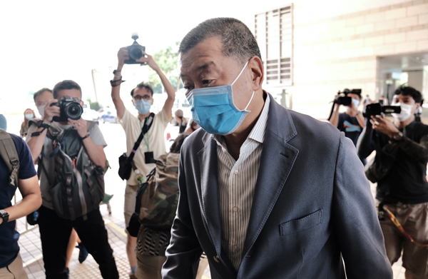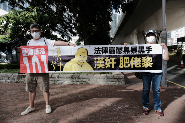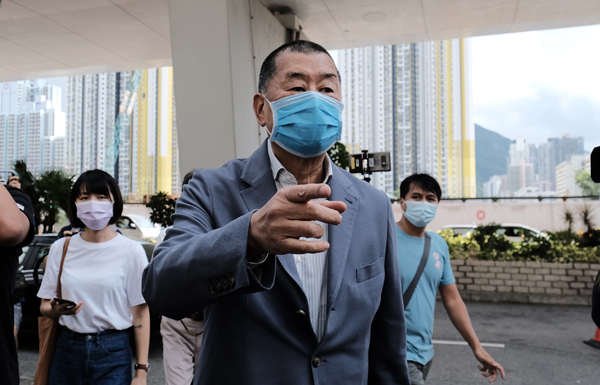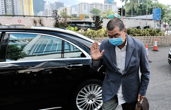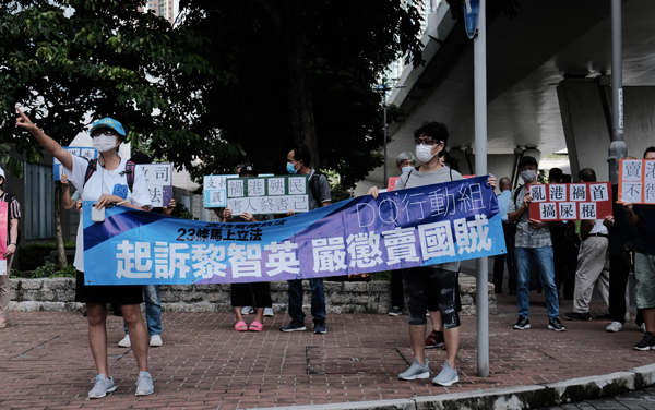 据香港中通社报道,8月20日上午,壹传媒创办人黎智英抵达香港西九龙裁判法院,就一宗刑事恐吓案应讯。多批市民在法院门口抗议要求起诉黎智英,严惩卖国贼。黎智英涉嫌于2017年6月,在维多利亚公园恐吓一名记者。 (图源:香港中通社)