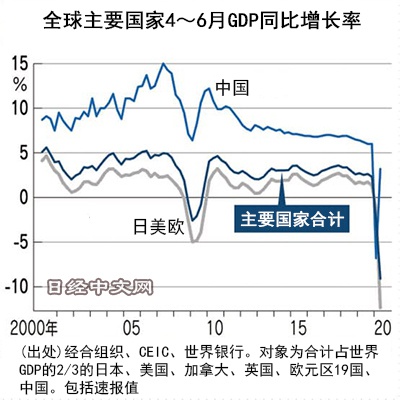 據日經中文網20日消息,全球24個主要國家2020年4-6月的實際國內生產總值(GDP)同比萎縮9.1%,下滑幅度達到雷曼危機時的約3.5倍,新冠疫情的影響非常突出。24國中只有較早就控制住疫情、轉向經濟複蘇的中國實現正增長,再次彰顯出兼顧防疫和經濟活動的重要性。
