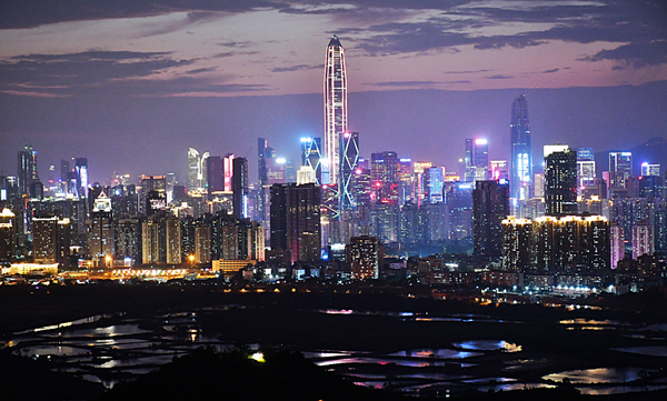 以往很多香港市民會在假日到深圳吃喝玩樂,現在受疫情影响,加上大部分的關口已關閉,而且到深圳和回港都要隔離14日(有人笑言:雖然港深只是一河之隔,但來回就要28日),於是去深圳的人少了很多,現在只能隔岸觀賞深圳五光十色的夜景。(记者馮瀚文攝於馬草籠)