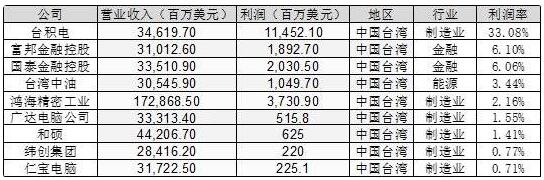 把企业仔细看,会发现中国大陆和中国台湾,不仅利润率低于美国不少,而且整体的产业结构比起美国差了一个档次。