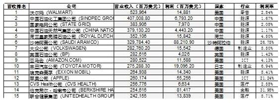 进入排行榜的门槛(最低销售收入)也从248亿美元提高到254亿美元。