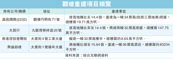 重建工廈在東九龍區內並不算罕見。事實上,觀塘的鴻圖道、大業街等街道附近都有不少申請改建的工廈,其中生產「銅芯抗疫口罩」(CU Mask)的晶苑國際(2232),總部位於觀塘巧明街71號,早年申請將該工廈放寬地積比,由原本12倍增至14.4倍。據悉,晶苑工廈地盤佔地13688平方呎,將申請重建為一幢34層高(包括3層地庫)商廈,總樓面19.71萬方呎。