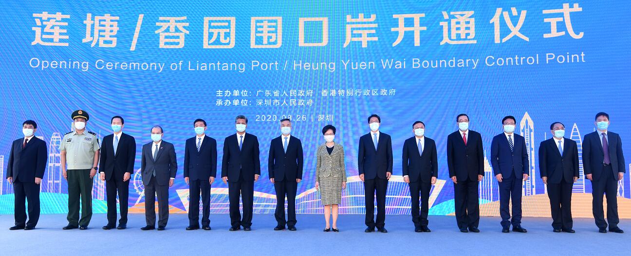 蓮塘口岸/香園圍邊境管制站今日(26日)開通,行政長官林鄭月娥上午在深圳出席開通儀式致辭時表示,今日是深圳經濟特區成立40周年的大喜日子,她代表香港特別行政區,向深圳市委、市政府和全市人民表示熱烈的祝賀!蓮塘/香園圍口岸在這個特別日子開通,別具意義,象徵着深港兩地日益密切的連繫。