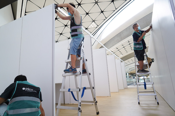 中場客運大樓目前沒有航班運作,臨時樣本採集中心設於樓面面積約33400平方米的中場客運大樓離港層。在兩星期內,大樓內的座位、登機閘口、地毯,被換成裝有新地板的樣本收集間、檢疫安排櫃位及寬敞的等候範圍。這次的改裝工程,全賴機場同業及相關政府部門超過250人不辭勞苦地協力為中心運作做好準備。(記者 何家驊)
