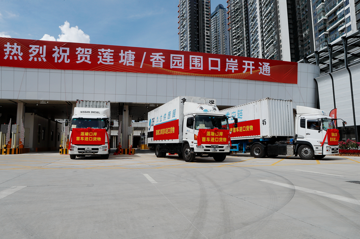 首批香港貨櫃車駛過蓮塘/香園圍口岸。李硯偉攝