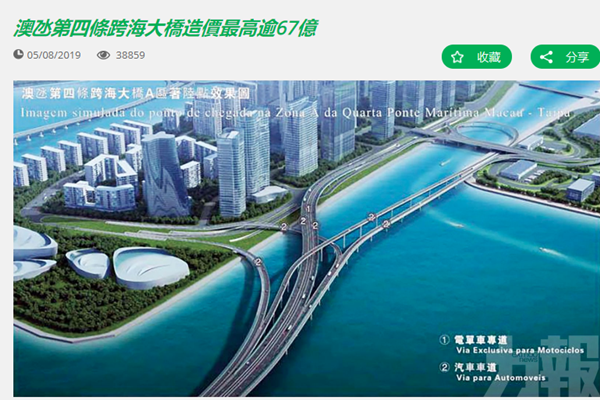 据介绍,第四条澳氹跨海大桥起自澳门新城填海A区东侧,与港珠澳大桥口岸人工岛连接,至澳门新城填海E1区,并预留与大潭山隧道对接高架桥。大桥主线全长约3.1公里,其中跨海段长约2.9公里,设置通航孔桥两座,跨度达280米。