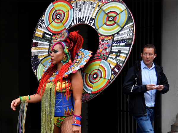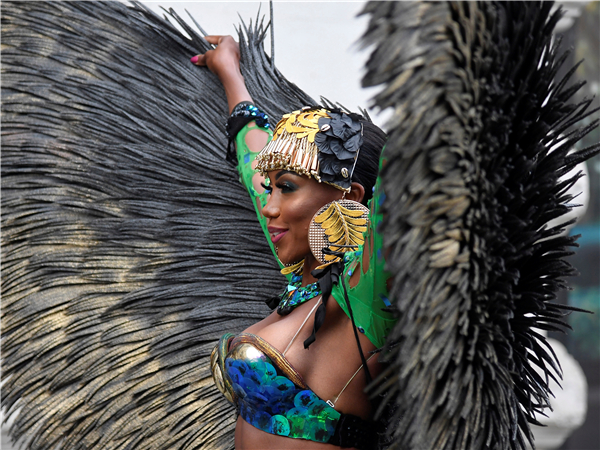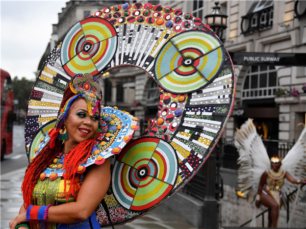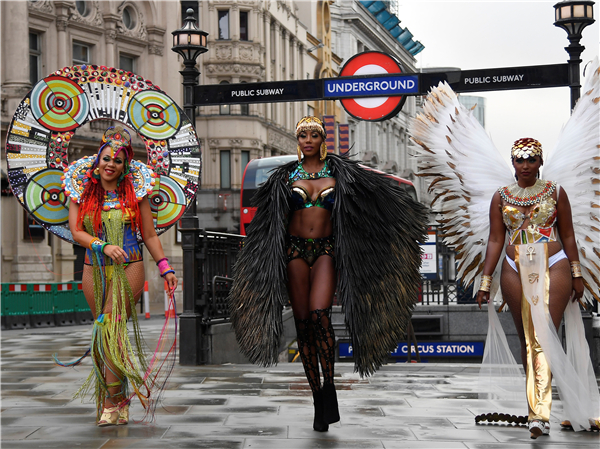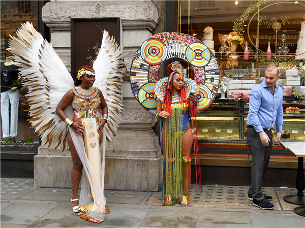 8月28日,一群舞者在伦敦街头宣传即将到来的第一个网上诺丁山狂欢节。由于受疫情的影响,主办方宣布取消今年的狂欢节活动,并改为在网上举行。诺丁山狂欢节起源于1964年,是欧洲规模最大的街头文化艺术节,每年8月底的最后一个周末在伦敦西区诺丁山地区举行,以非洲和加勒比地区文化为主题,是英国多元文化的象征之一。(图源:路透社)