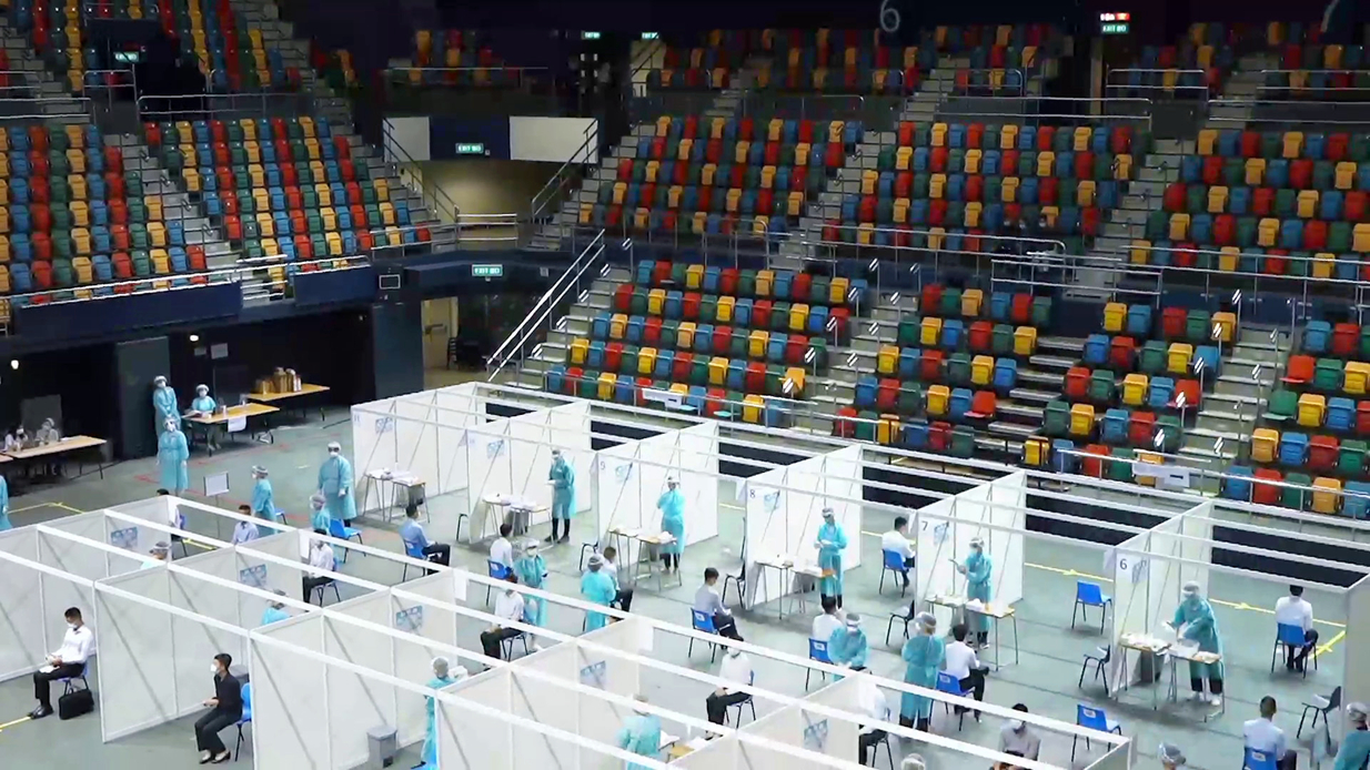 被問到中央如何支持檢測計劃時,食衛局常任秘書長(衛生)陳松青表示,中央支持的檢測部分,主要有兩個環節,包括中山紀念公園的臨時氣膜實驗者。他說,中央在8月初已成立有60人的小隊,記者會後有160多人的支援隊員來港,中央政府最多可以提供600人的支援人員。