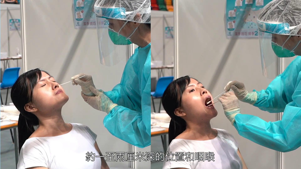 檢測人員分別採集鼻腔和咽喉拭子樣本。中通社