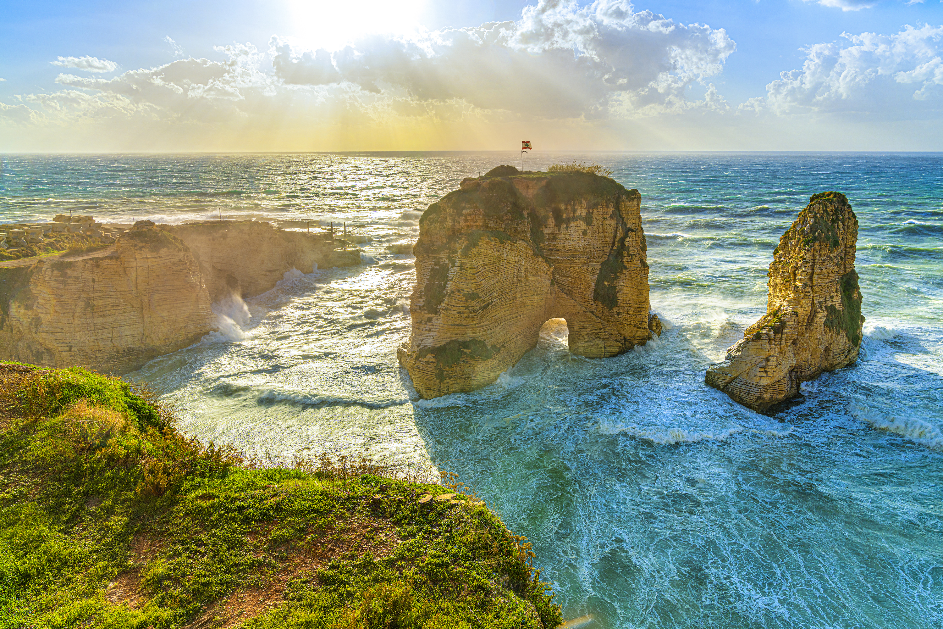 貝魯特西海岸邊上的石灰岩,被稱為鴿子岩(Pigeon Rocks)。