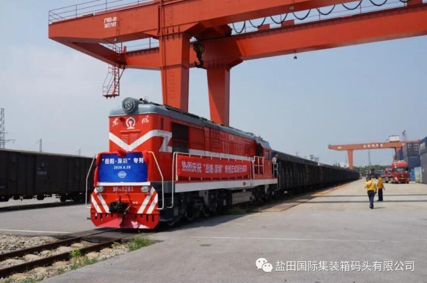 8月28日,一列裝載着打印機等電子產品的班列從湖南岳陽北站駛出,開往深圳鹽田,將在鹽田國際接駁遠洋班輪,這標誌着鹽田國際—平鹽海鐵聯運的 「鹽田-岳陽北」班列正式開行。