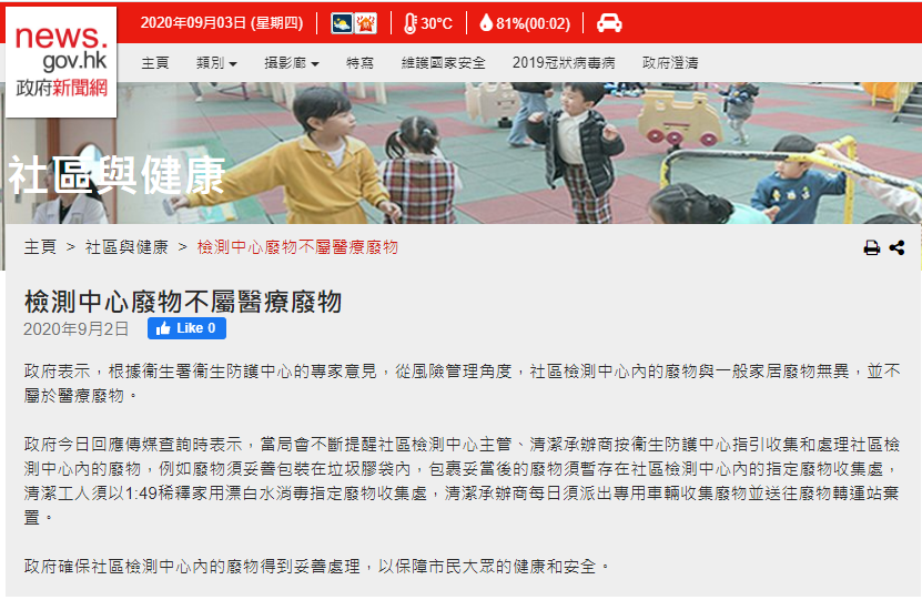 發言人強調,政府會確保社區檢測中心內的廢物得到妥善處理,以保障市民大眾的健康和安全。