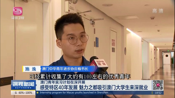 「通過近期與同學的溝通,了解到他們在本次實習除了在工作技能、職場經驗及行業視野拓展上有提升外,也從經濟、文化、科技等層面深入地認識大灣區,了解深圳如何在短短40年內從小漁村發展成為國際大都市、前海如何在10年間從一片灘涂崛起新城,收穫頗豐。」作為本次澳門學生組織方代表——澳門中華青年進步協會秘書長施逸談及本次實習計劃。