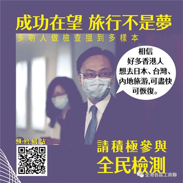 核酸檢測能阻斷社區傳播,最關鍵的就是檢測出它的傳染源,這樣的話檢測清楚了以後就能阻斷傳染,這個很重要很關鍵。我們一定要竭盡所能呼籲全民積極參與檢測,早日找到根源,早日零確診,才能早日恢復正常生活。行街、吃飯、聚會、旅行,這些都是我們期待已久的事,我們大家都迫不急待的想恢復正常生活,就請大家齊齊呼籲身邊所有親朋戚友去檢測。只有恢復人氣,香港經濟才可能重新找到起點,香港才能再出發。