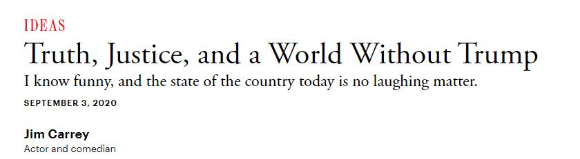 美国《大西洋》杂志3日发表著名喜剧演员金·凯瑞撰写的评论,金·凯瑞在文中指美国总统唐纳德·特朗普夺走了美国人的生命,毁了美国人的生活。