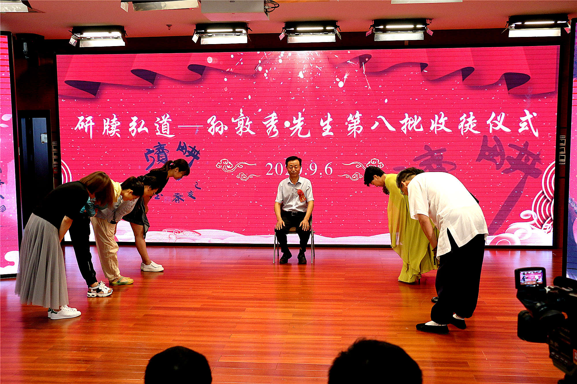 在書法展開幕儀式之後,舉行了孫敦秀先生第八批收徒儀式,今年收徒是在前七批81人基礎上又接收8名新徒弟,總數已達89人,隊伍越來越壯大。