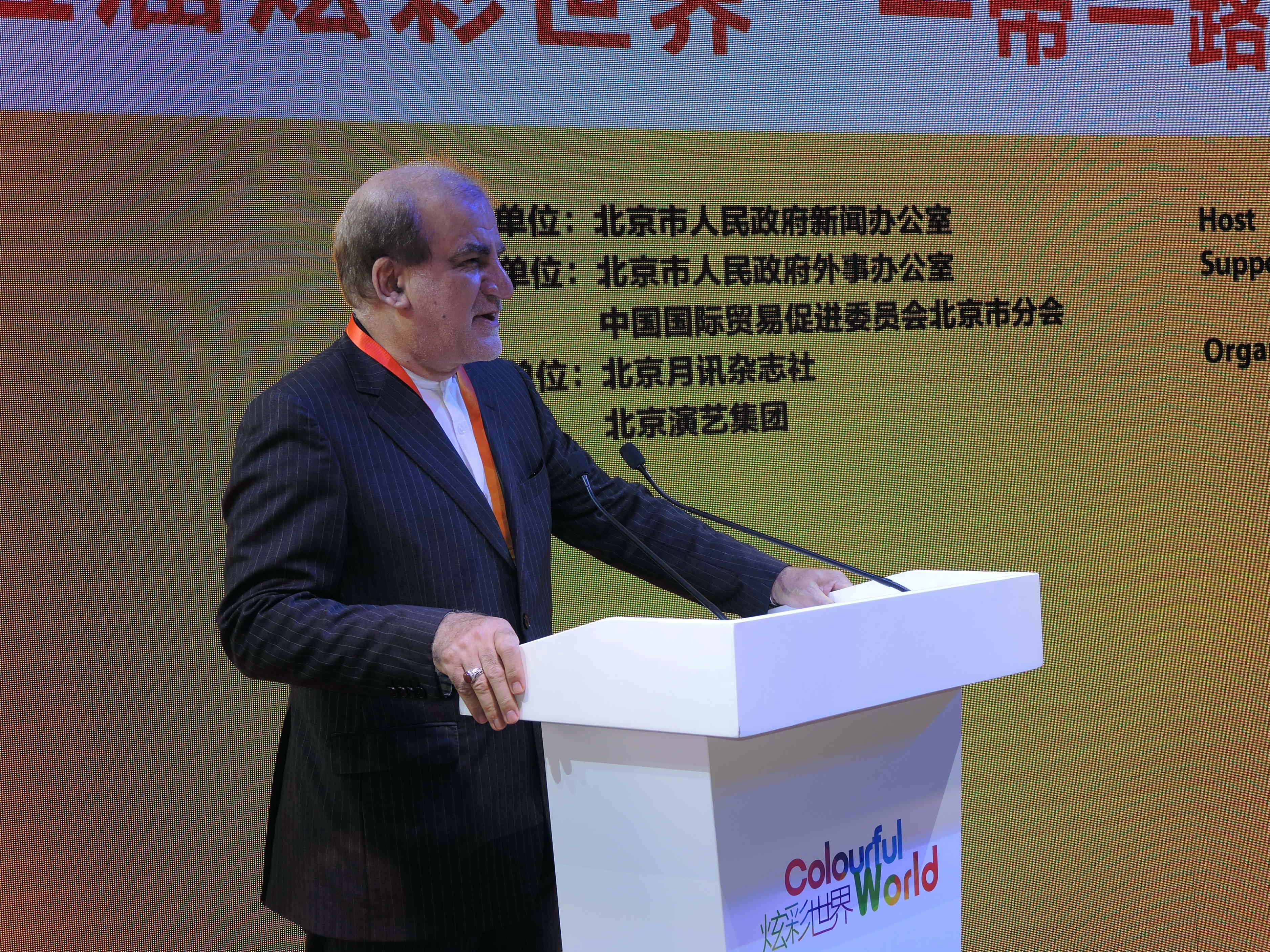 開幕式上,北京市委宣傳部副部長、北京市人民政府新聞辦公室主任徐和建發表致辭。他說:「北京的時尚靈動與現代節奏令人目不暇接,有着鮮明的首都風範和時代風貌。服貿會為北京推動國際文化交流提供了平台,這正是『炫彩世界:一帶一路沿線國家特色文化展示』活動能夠一年一度常辦常新的背景和機遇。因此,我們能在這個特別值得紀念的日子裏,在這裏遇見來自不同國家的熱情的朋友們,共同欣賞30餘個國家的精彩文化,感受這些國家的人文風情,親歷多元文化在此匯聚和實現融合、發展與共贏。」此外,安哥拉共和國、巴巴多斯共和國駐華使館、伊朗伊斯蘭共和國、馬耳他共和國、大使也分別為本次炫彩世界活動發表了致辭。