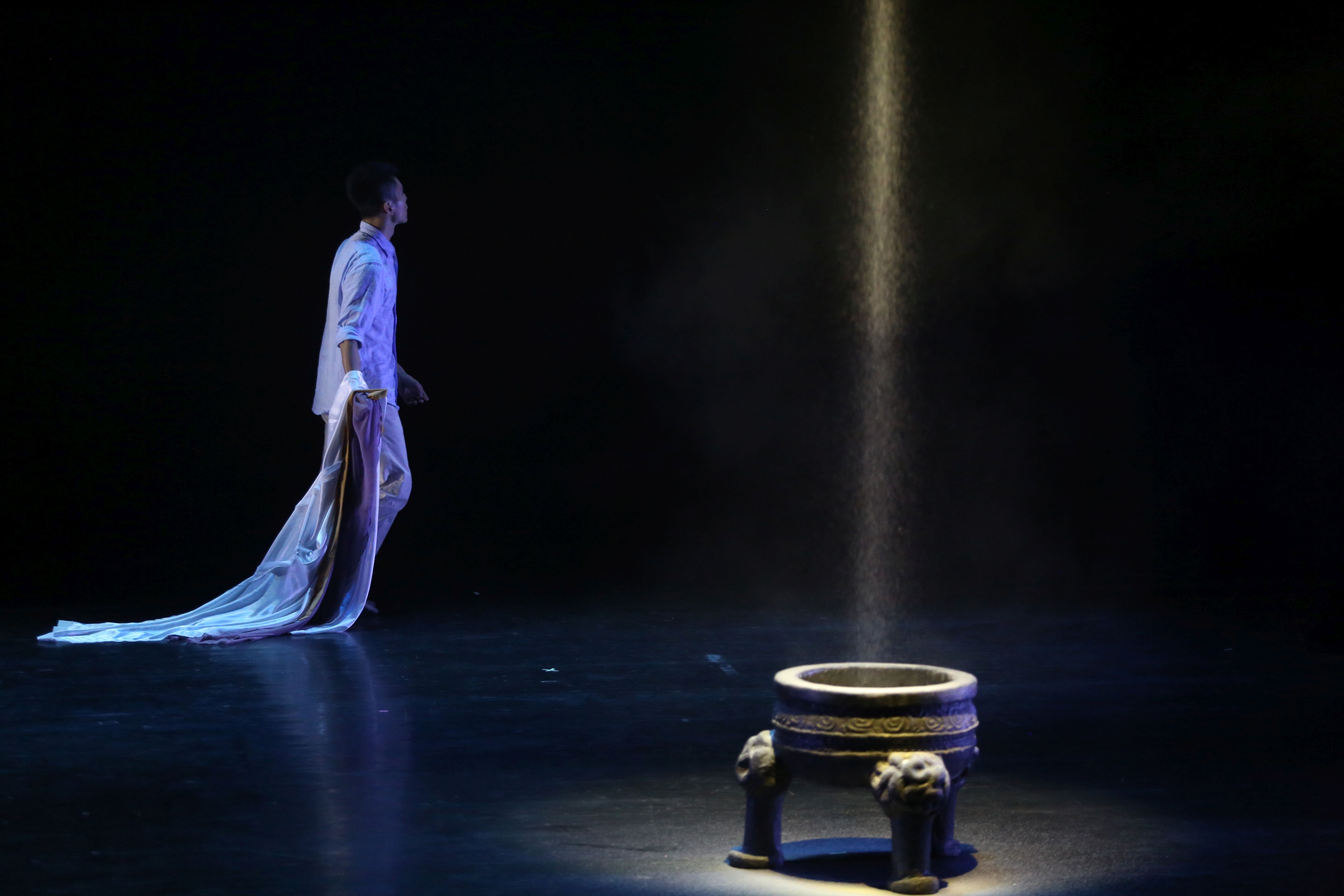 在《不死的祭禮》中,莊陳波亦用了很多傳統元素,例如鼎、小生穿着的長袍等,「我不會一板一眼地照搬道具,反而希望做到更多情感上的轉達。」作品中出現的鼎,他認為它承載着中國傳統文化及珍貴歷史,「屆時,舞台上會有6至7公斤的沙從上而下緩緩流落鼎中,代表時間流逝,流沙這場面很美麗。」同時,舞者也會將一些陶瓷公仔放到鼎中,意味着將內心珍貴的回憶傳承下去。