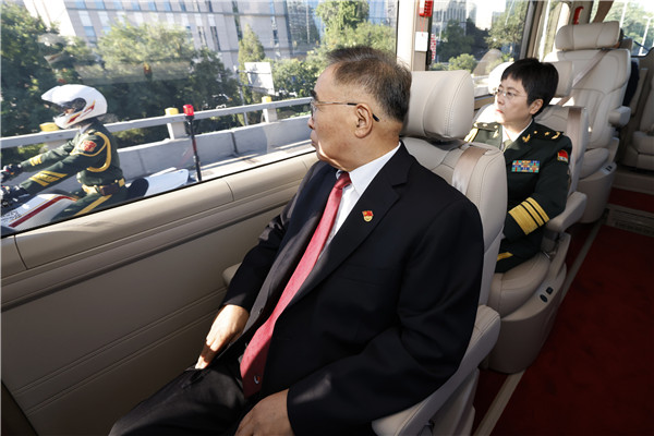 9月8日上午,「共和国勋章」获得者鍾南山,「人民英雄」国家荣誉称号获得者张定宇乘坐礼宾车前往人民大会堂。