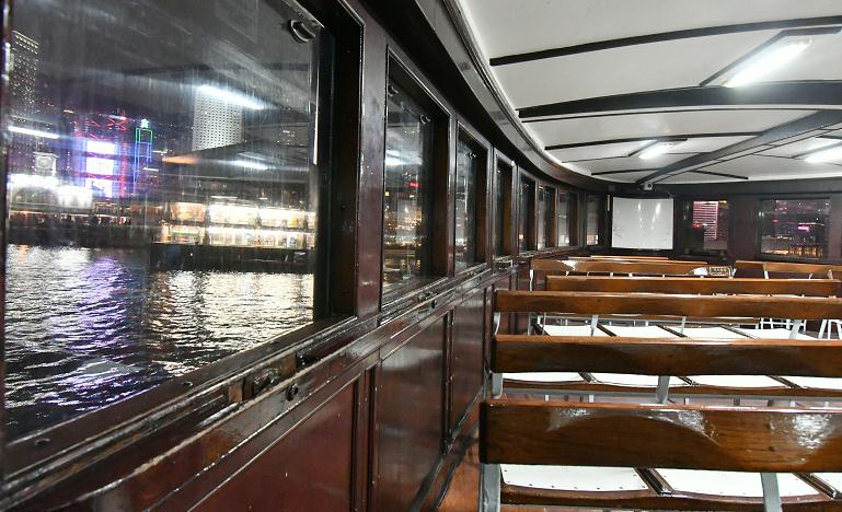 因為疫情關係,遊客少了,市民亦因限聚令減少了夜晚外出,晚上乘坐渡輪的人寥寥可數,以往船上熱鬧的景況,現在只有空空的座位而變得寂靜。希望疫情快點過去,香港可以回復昔日繁華,渡輪可以再熱鬧起來。(馮瀚文攝)