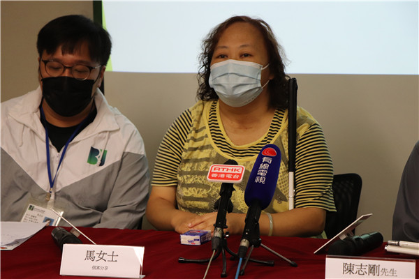視聽障人士馬女士出席記者會分享新失明人士所面對的困境