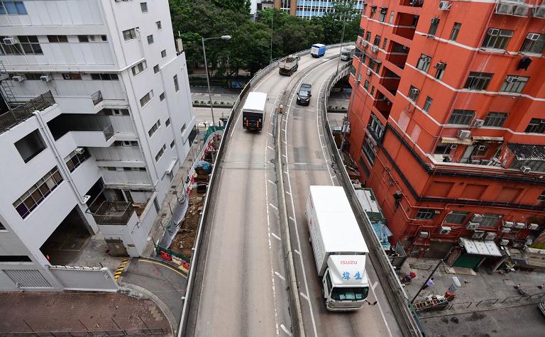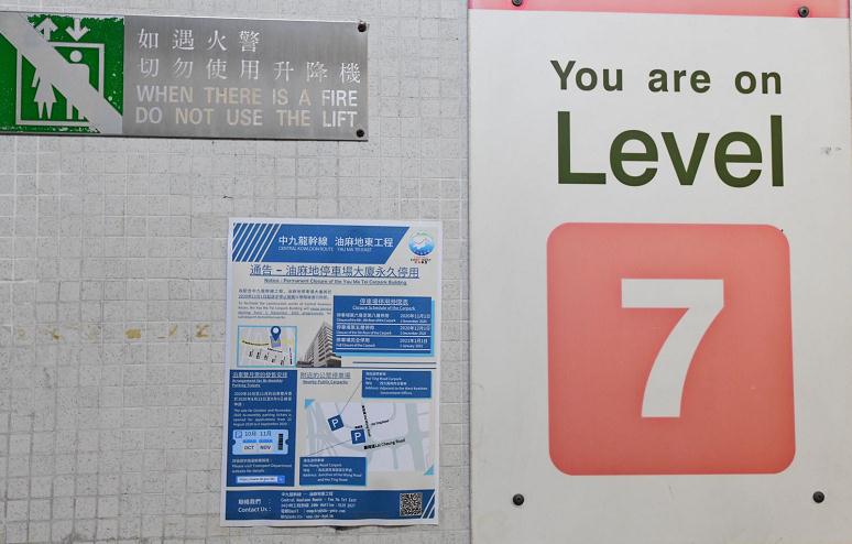有63年歷史的油麻地停車場,爲了配合中九龍幹綫發展,將於今年11月起逐步停用,計劃明年拆卸。其中停車場最大特色, 是中間第二層至第五層是中空設計,由加士居道天橋以穿牆形式, 讓車輛駛過入內。一代港人記憶中的「穿墻」奇景將成爲歷史。(崔俊良攝)