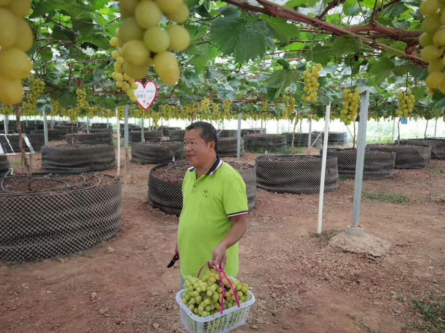 碩果纍纍的陽光玫瑰葡萄產業園帶動了350名當地農民就近就業。