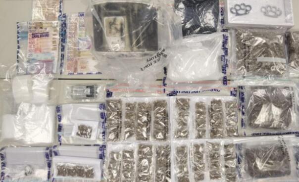 警員其後突擊搜查附近一單位,檢獲約2.8公斤懷疑可卡因、約2.2公斤懷疑大麻花、約13克懷疑大麻精及一批毒品包裝工具。行動中檢獲的毒品市值約500萬元。另外,警員在單位內亦檢獲兩個「鐵蓮花」。