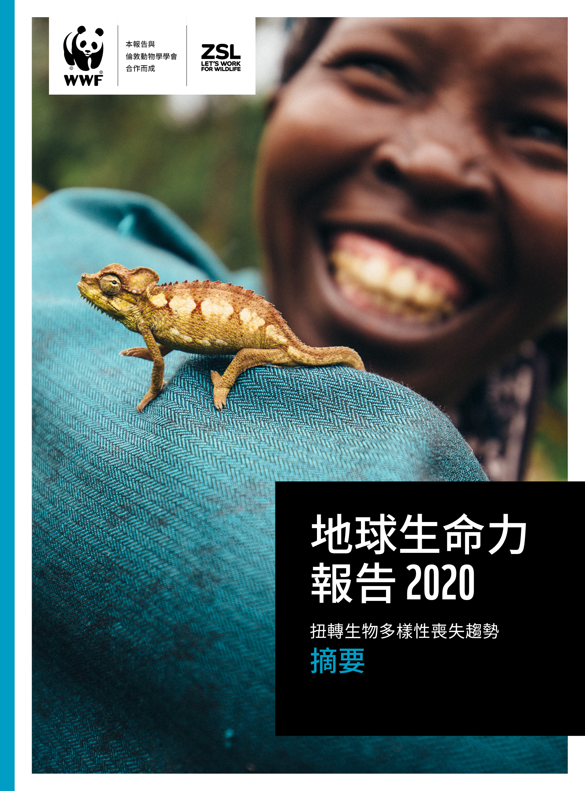 世界自然基金會《地球生命力報告》指生物多樣性持續銳減,全球脊椎動物種群數量由1970起平均驟減68%,圖為報告封面。