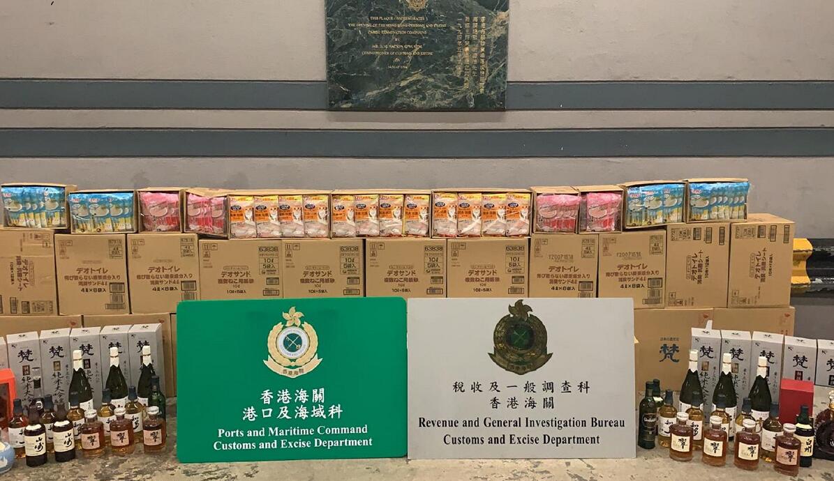 海關人員透過風險評估後,分別於5月22日、8月13日及9月9日,在葵涌海關大樓驗貨場檢查共4個從日本抵港並報稱載有二手汽車零件的海運貨櫃。經檢查後,海關人員在貨櫃內發現該批懷疑未完稅烈酒及懷疑走私日本清酒和啤酒,並同時檢獲一批懷疑走私雜貨,包括寵物用品和日用品。