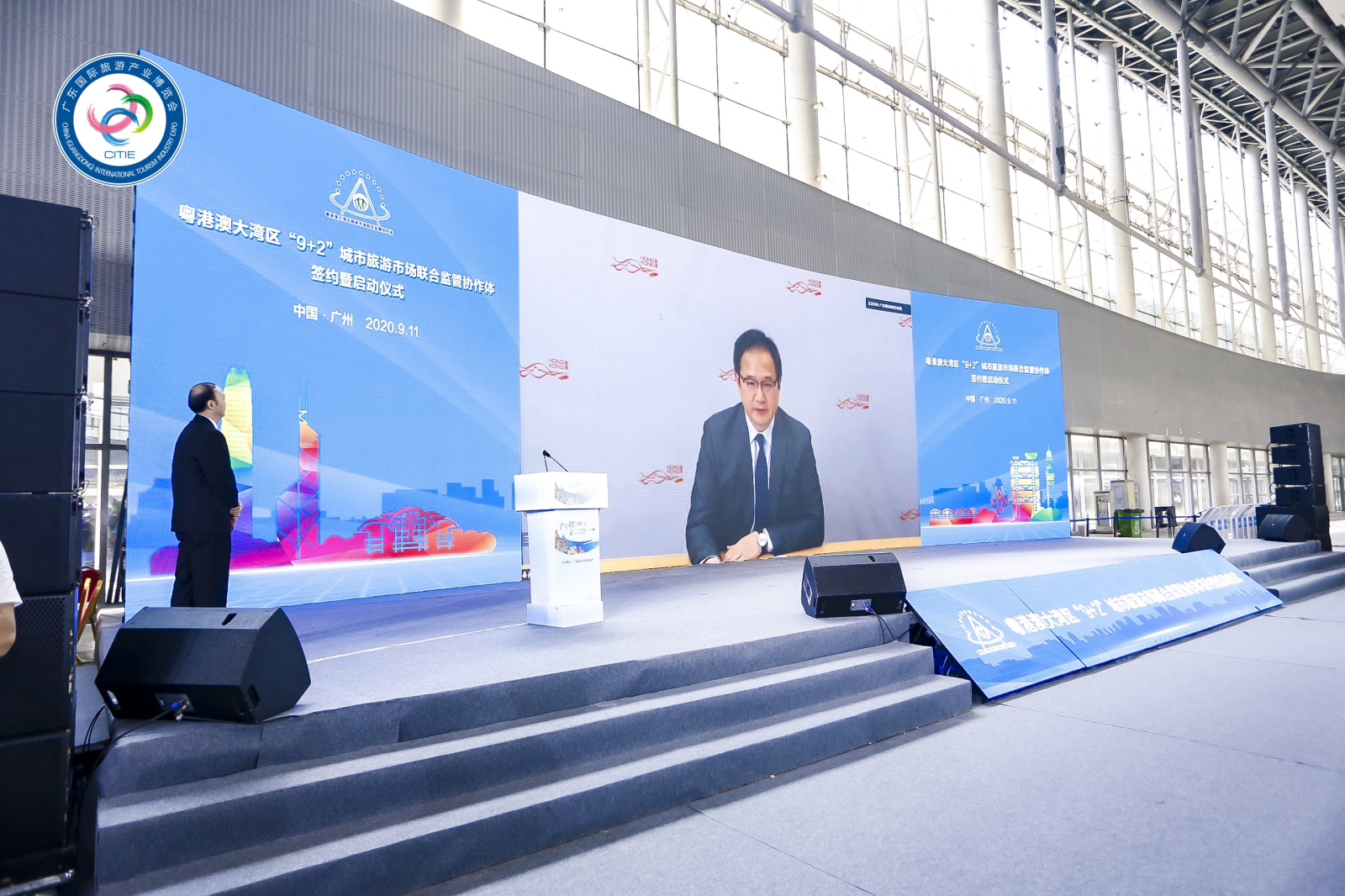 香港特別行政區商務及經濟發展局旅遊事務署旅遊事務專員黃智祖以視頻的形式在大會上發言,他表示,成立粵港澳大灣區9+2城市旅遊市場監管協作體,將更有效加強和完善旅遊市場監管工作。