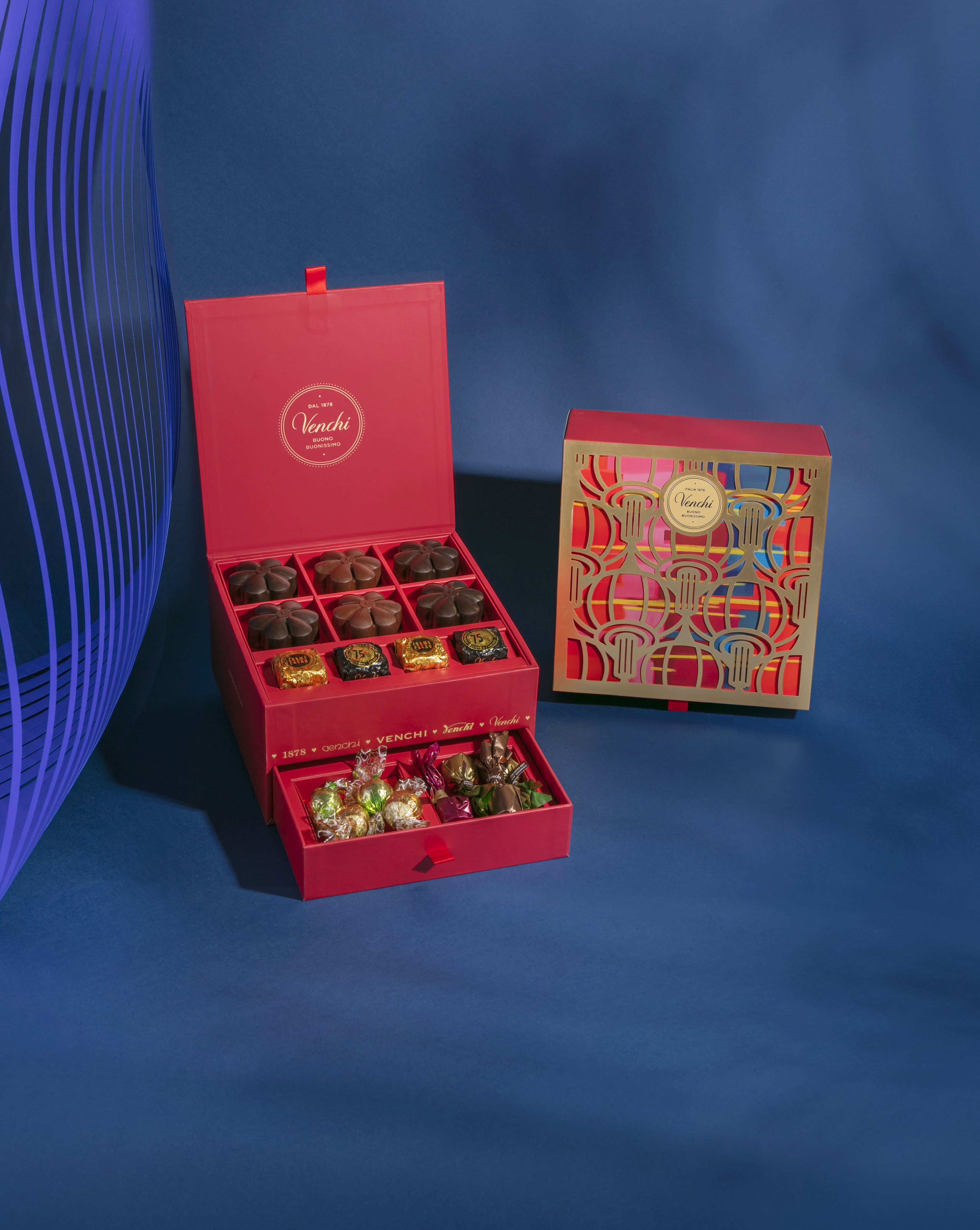 喜歡甜食及素食的讀者,可留意意大利傳統手工巧克力品牌Venchi的中秋禮盒,巧克力月餅以全天然食材製作,沒有使用任何蛋或奶的成分,打造成花朵造型。新推的巧克力月餅包括3款口味:榛子餅乾碎、抹茶可可碎、黑櫻桃,味道層次豐富。禮盒以傳統彩燈為靈感,加入了傳統剪紙藝術的元素,展現出中秋花燈滿城的畫面。