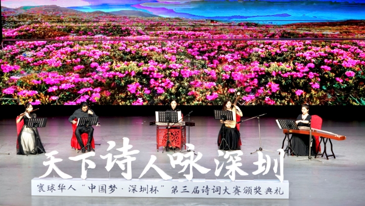 寰球华人“中国梦·深圳杯”诗词大赛已经走过了六个年头,成功举办了三届,在海内外的反响越来越大。据悉,本次颁奖典礼现场首次使用了网络直播进行展示,通过直播观看典礼的观众多达2.2万人次。