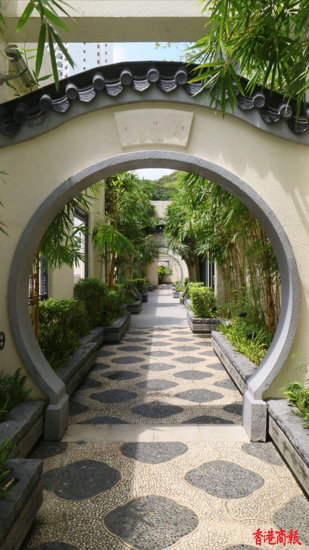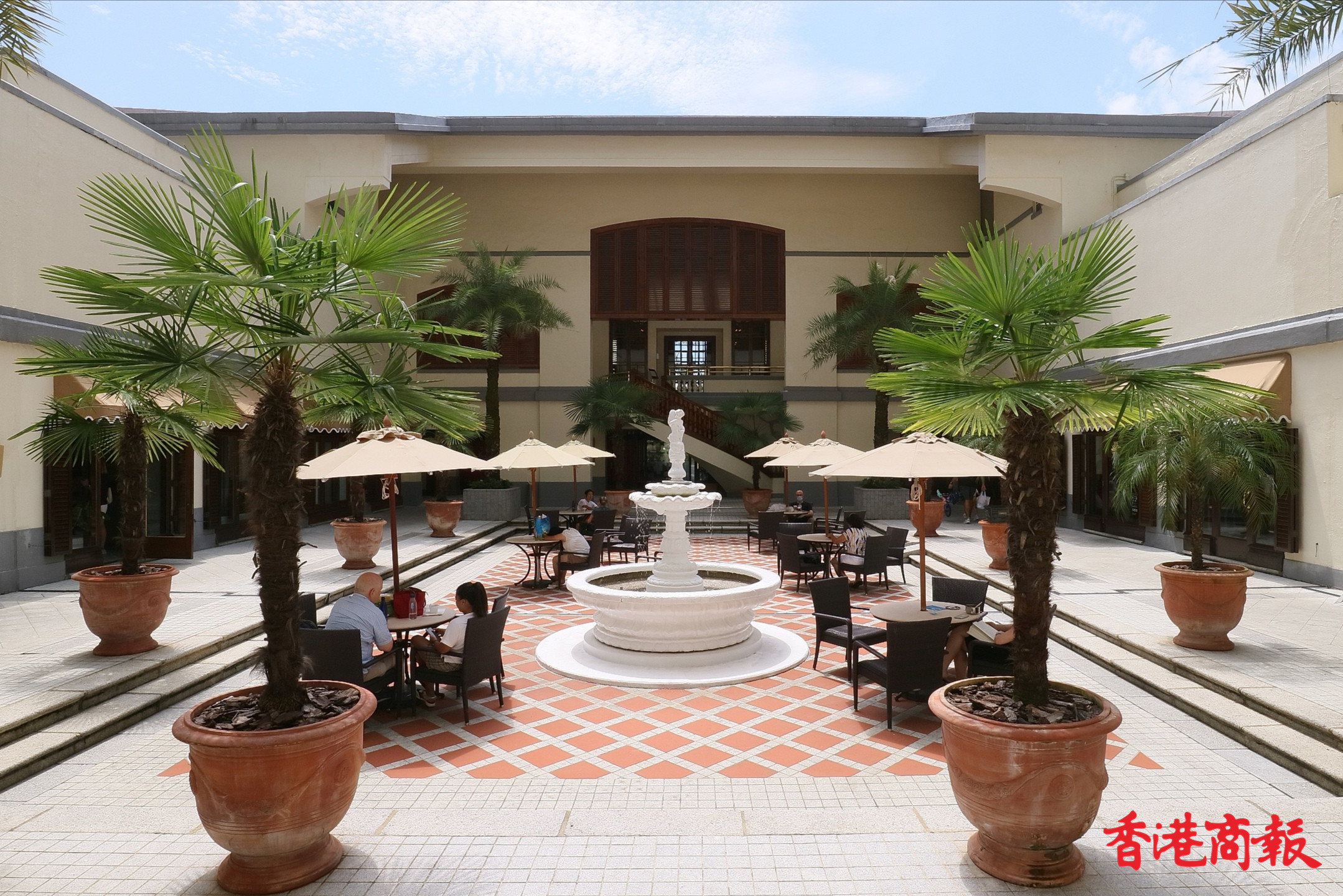 影灣園的商場模仿已經拆卸的淺水灣酒店的設計,保留着歐陸復古建築,部份地方和二樓走廊則以中式園林設計,中西風格合璧,另有一番景緻,成為市民和遊客的打卡熱點。(記者 馮瀚文 攝)