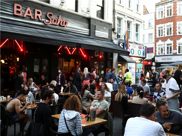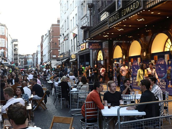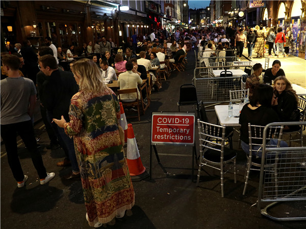 据外電報導,當地時間9月12日,英國新增確診病例7036宗,創下近期新高。英國政府宣佈實施新的局部封鎖措施,部分城市禁止不同家庭之間的社交活動。但部分英國民眾對此不以為然,依然不戴口罩在街頭聚集、聚餐,圖為當地時間9月12日倫敦街頭的景象。(圖源:路透社)