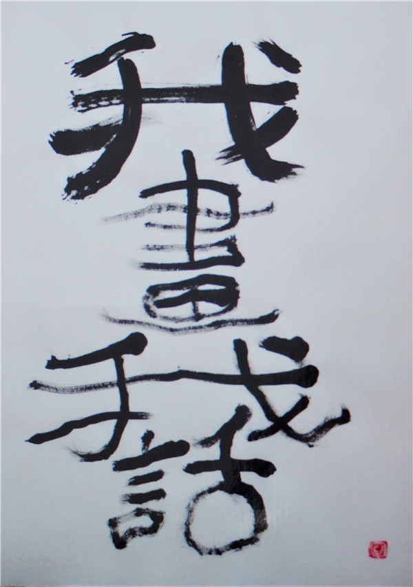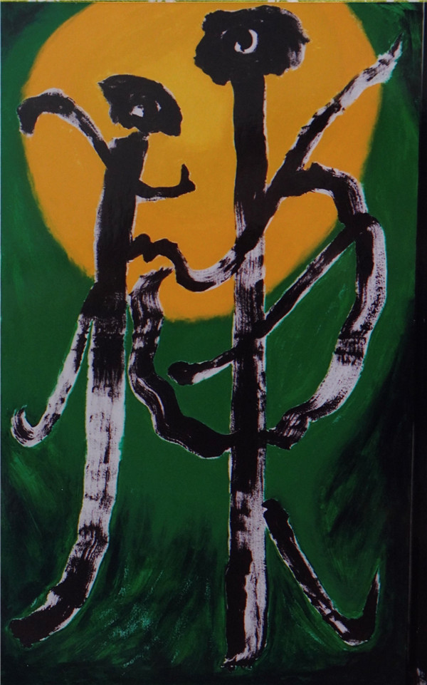廖東梅為「稻鄉飲食文化博物館」創作的甲骨文畫作《神——昇華信仰》 2005年