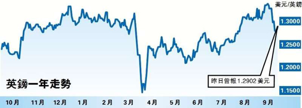 另外,日本內閣官房長官菅義偉當選執政黨自民黨新一任總裁,他將接替安倍晉三出任日本首相,菅義偉表示會延續安倍的路線,市場普遍認為他將會延續及進一步強化「安倍經濟」模式。菅義偉當選後日圓靠穩,美元兌日圓在105.60至106.00水平徘徊。日本央行將於周四議息,市場預期會繼續推行措施,支持企業應對疫情。筆者認為日本現行的經濟策略及寬鬆措施都不會有很大改變,但市場仍充滿風險事件,日圓繼續受惠於避險情緒,走勢會反覆偏強,不過兌美元至104.50水平將遇上阻力,預期在104.50至106.50波動。
