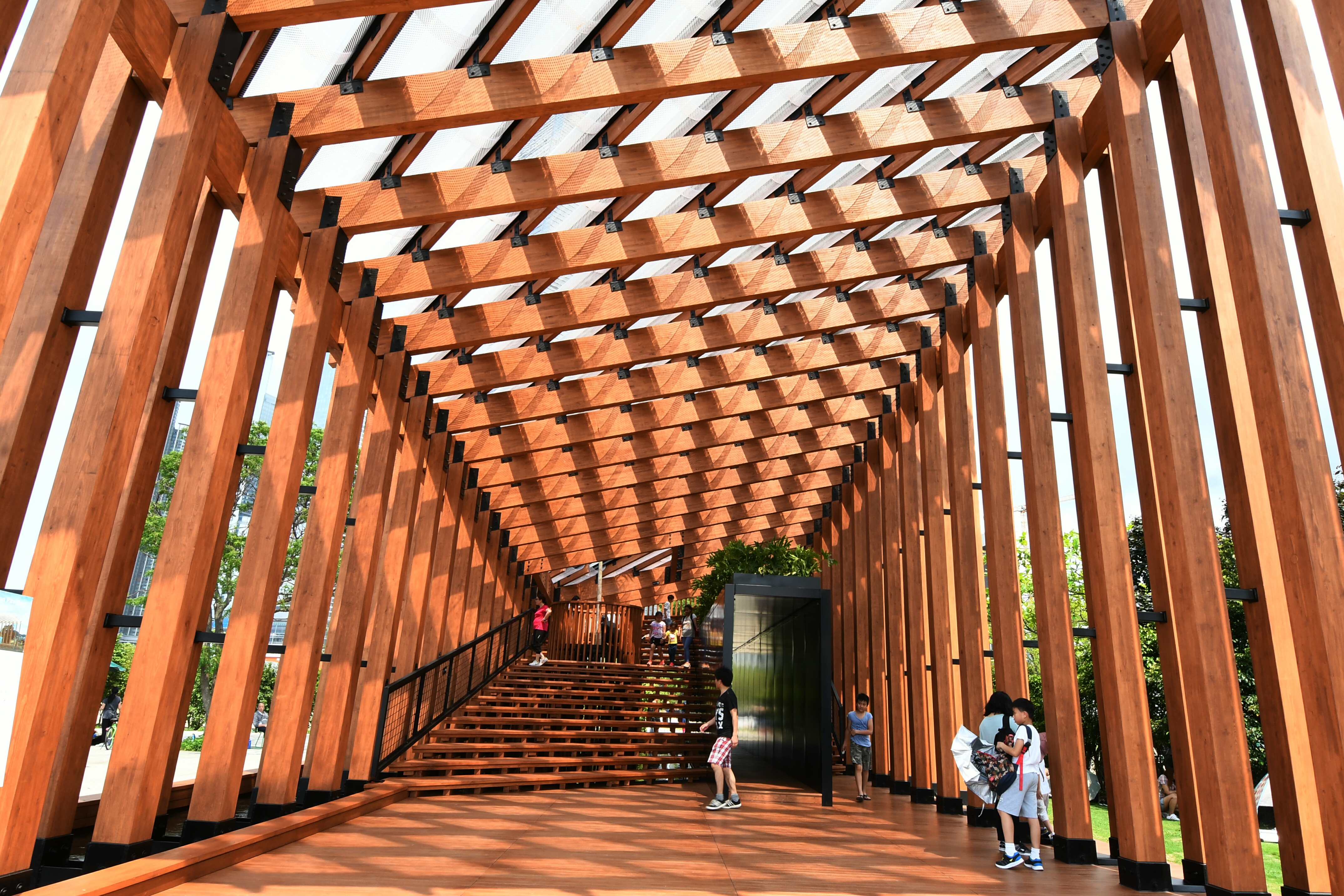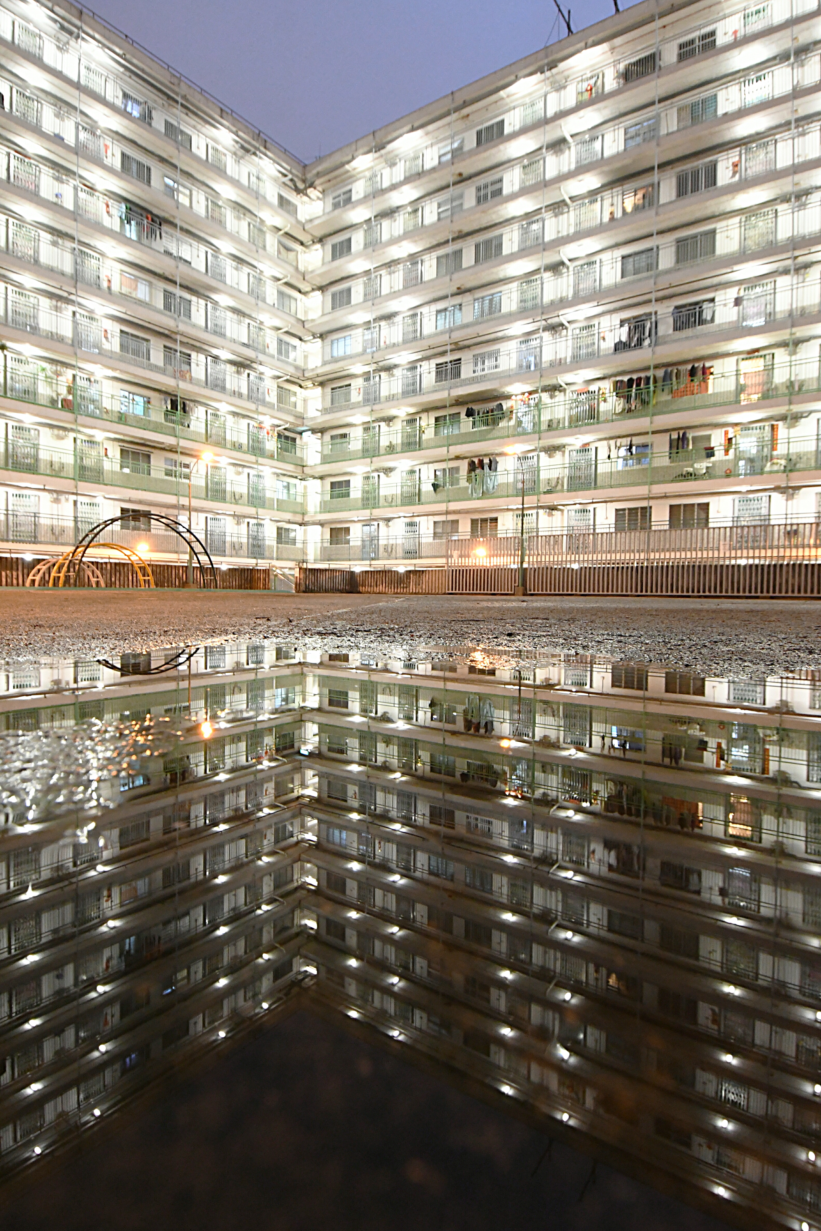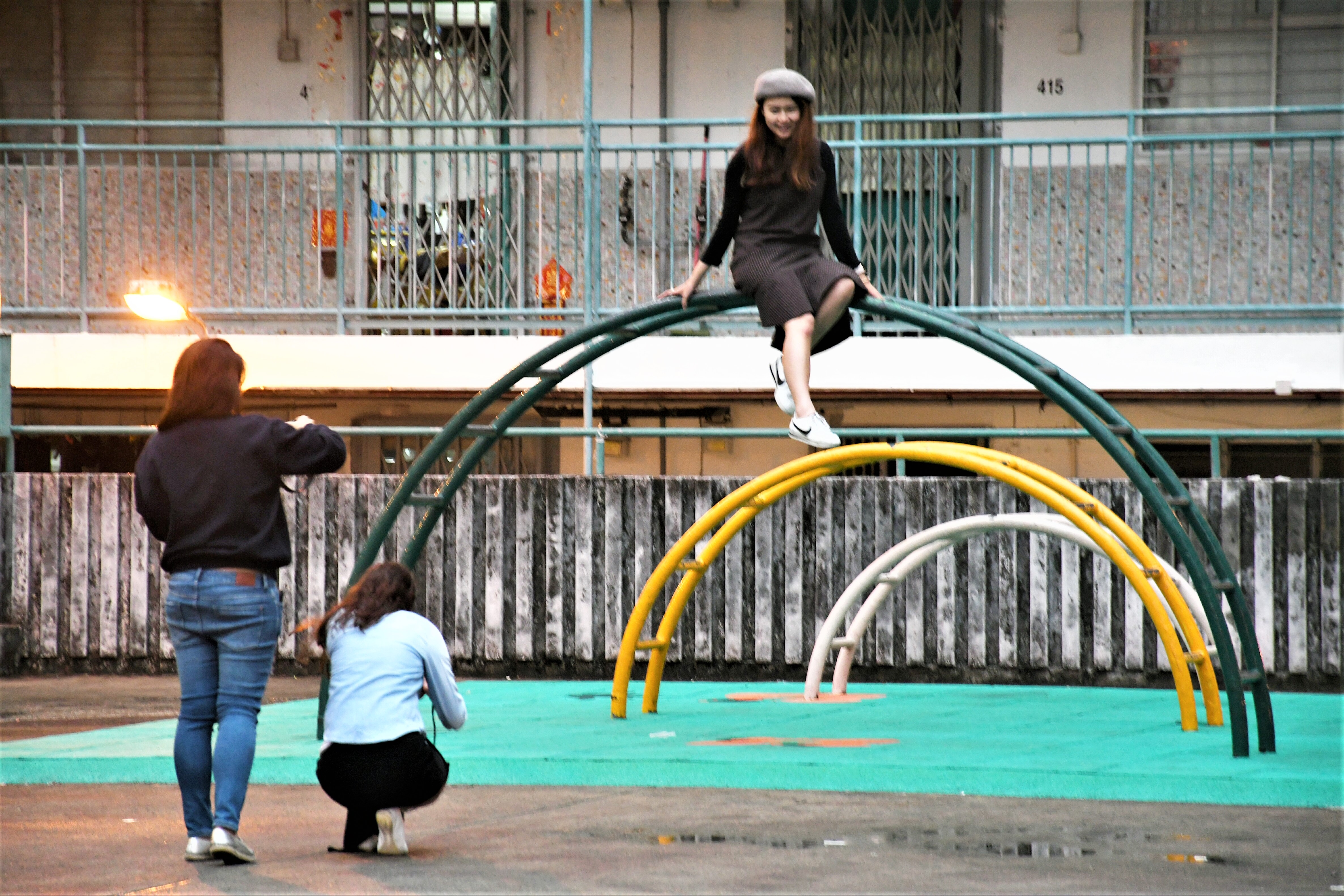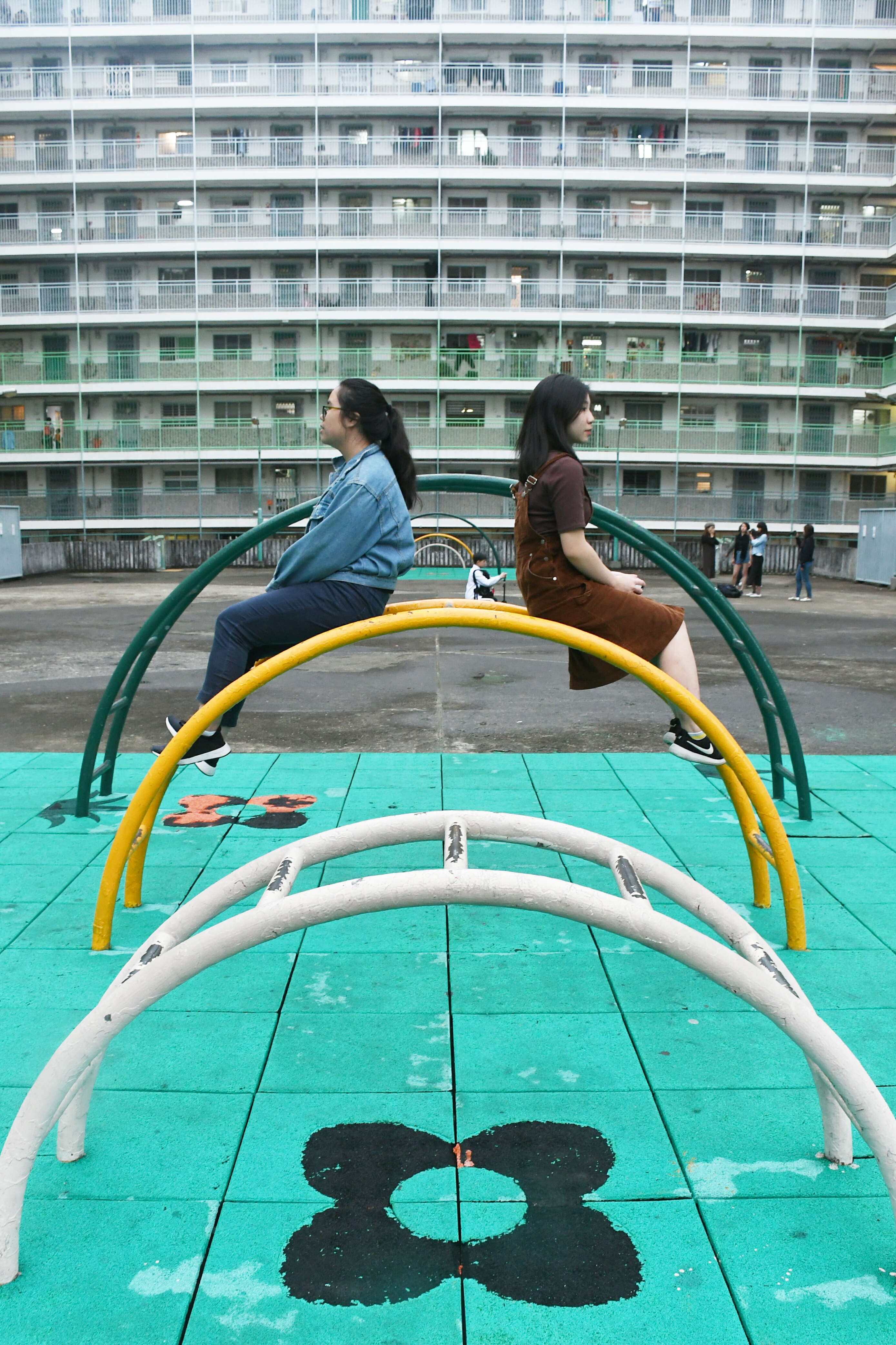 攀爬架建在樓宇交錯的中央位置,從遠處拍攝,能將密密麻麻的單位拍得對稱。