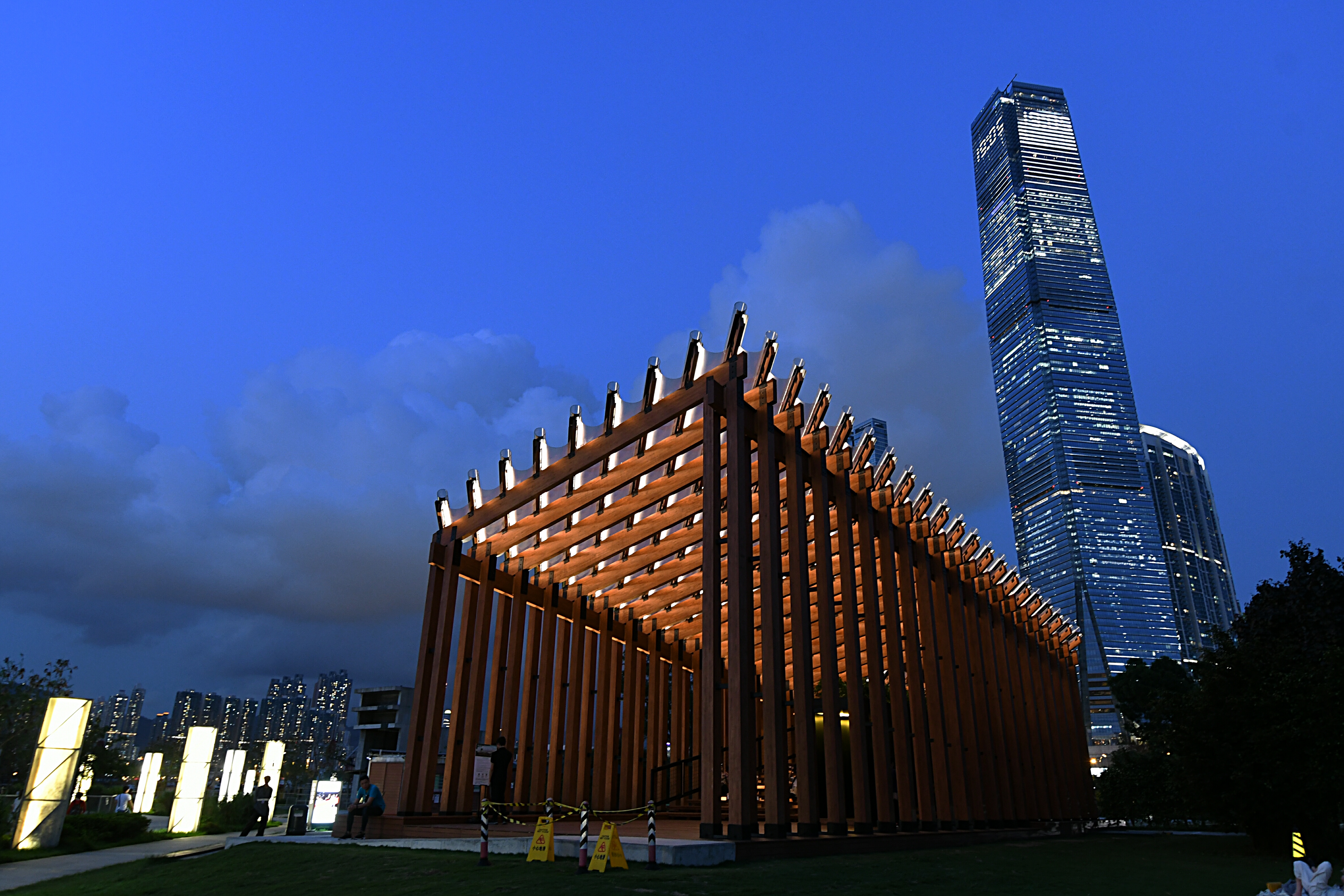 海邊景色、「鹹蛋黃」般的夕陽、開放式的木製展亭,說的是位於西九海濱長廊的「Growing Up」展亭。在港鐵九龍站的E4或E5出口,走過行人天橋後,便可抵達西九文化區,「Growing Up」展亭就在區內的苗圃公園裏。